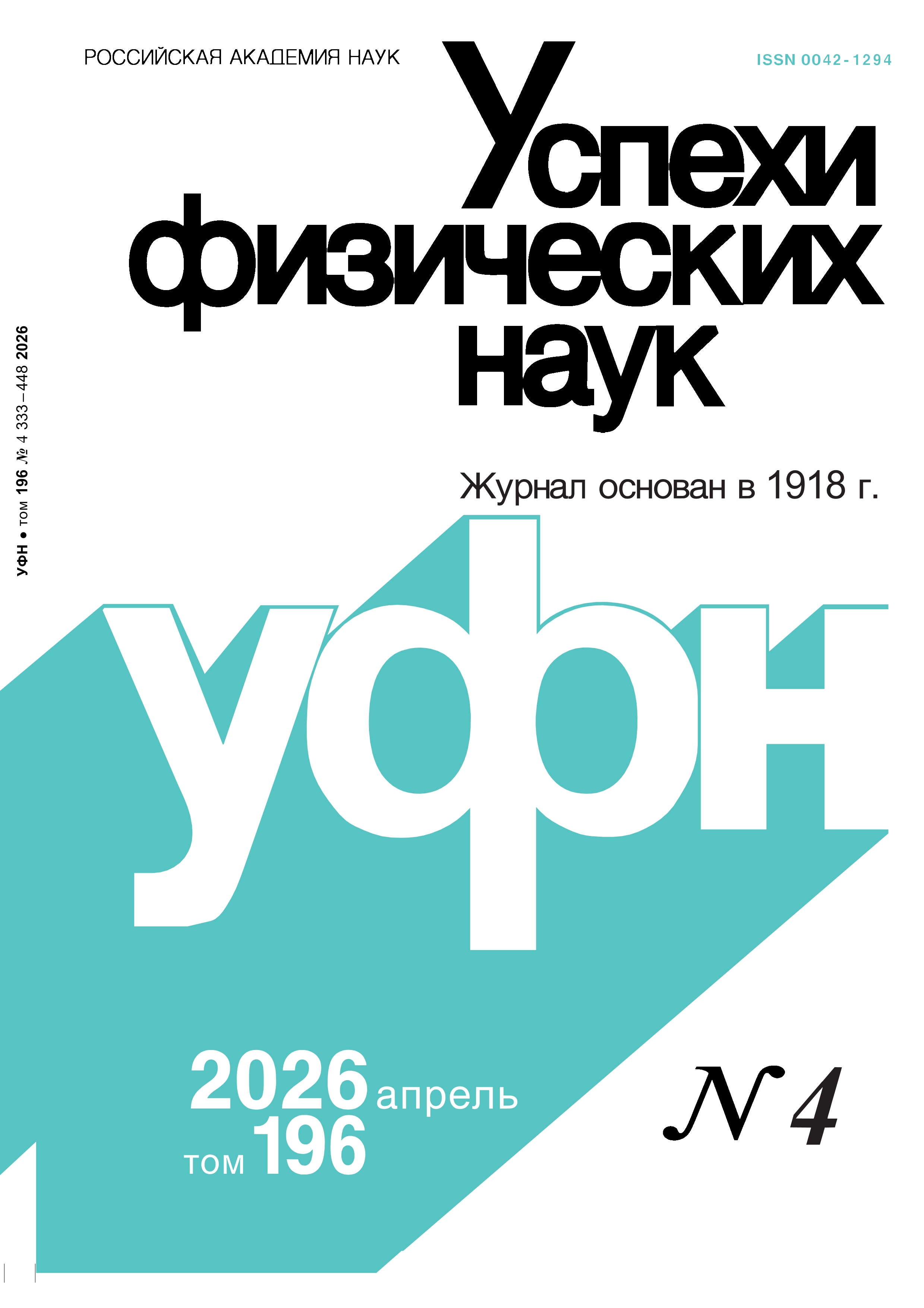 Научные новости Ю.Н. Ерошенко «Новости физики в сети Internet: март 2026» УФН 196 330–330 (2026) Персоналии Л.М. Зелёный, К.П. Зыбин, В.В. Кведер, Н.Н. Колачевский, Е.А. Кузнецов, А.Г. Литвак, В.Я. Панченко, В.М. Пудалов, Н.А. Ратахин, О.В. Руденко, М.В. Садовский, В.Ю. Хомич, В.Н. Чарушин «Геннадий Андреевич Месяц (к 90-летию со дня рождения)» УФН 196 331–332 (2026) Выпуск 4, 2026, том 196Обложка ![]() Обзоры актуальных проблем